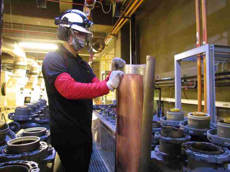开云电子将废弃物转化成有效的工业或民生原物料,,图为废铜液淬炼后再制成纯度极高的铜管