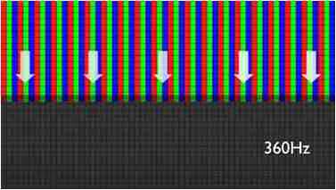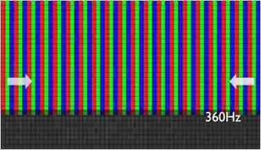 传统液晶驱动是从左到右单向进行,,在画面更新速度愈来越愈快的情况下,,位于驱动线路末端的右下角区域,,画素的闸极来不及在短时间内获得足够电压,,,无法显示出正确的颜色资讯。。。。 |